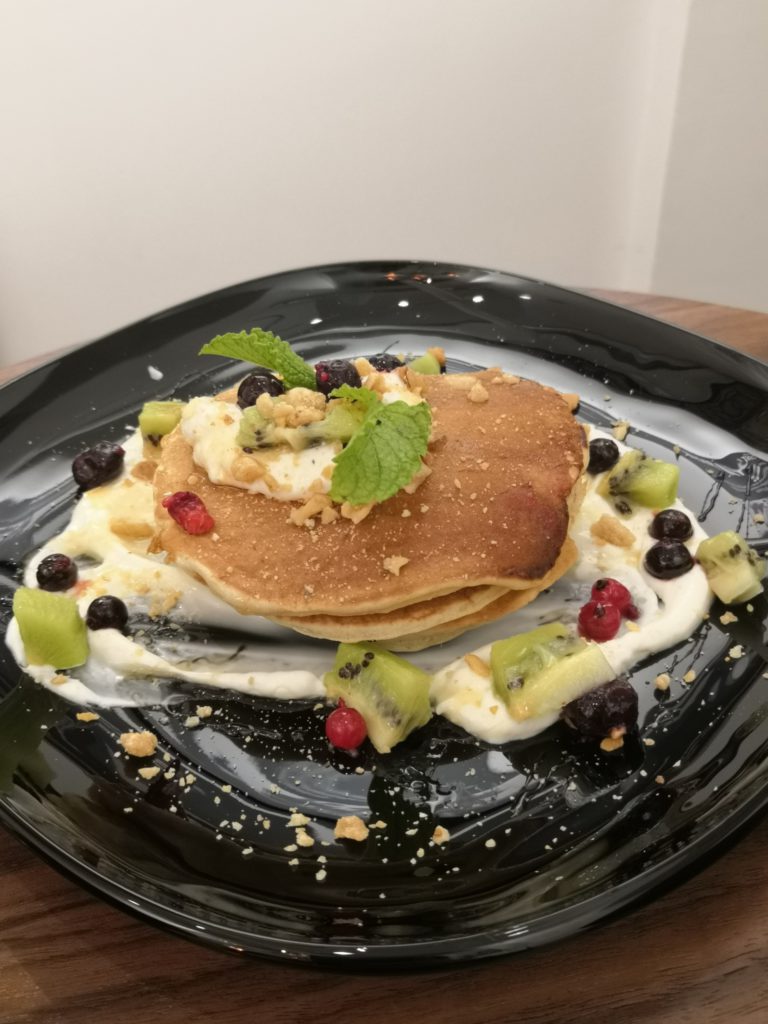 V kavárně nabízejí každý všední den sladké i slané snídaně. My jsme ochutnali espresso, cappuccino, matcha latté a sladké lívance s ovocem. Espresso byla skvěle připravená Etiopie, v cappuccinu jsme ochutnali kávu z Kostariky. Kavárna má vlastní pražírnu v Rumunsku, kávu tedy ochutnáte pouze zde.