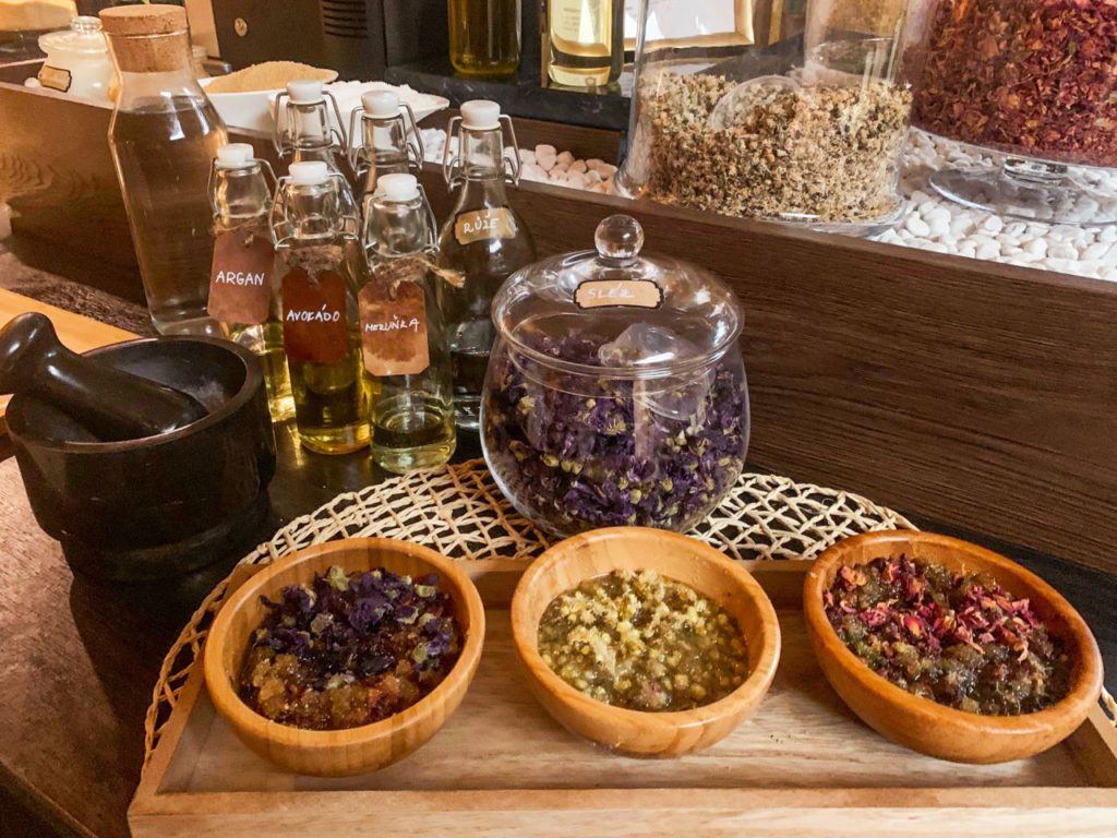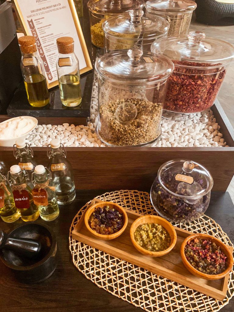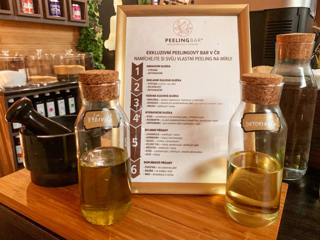 Peelingový bar, který se nachází ve Spa & wellness Aquapalace Praha nabízí výběr z několika olejů, bylinek a dalších ingrediencí, které si sami podle libosti nakombinujete. Vytvoříte si tak originální peeling, který bude přesně podle vašich preferencí a na míru vašim potřebám.