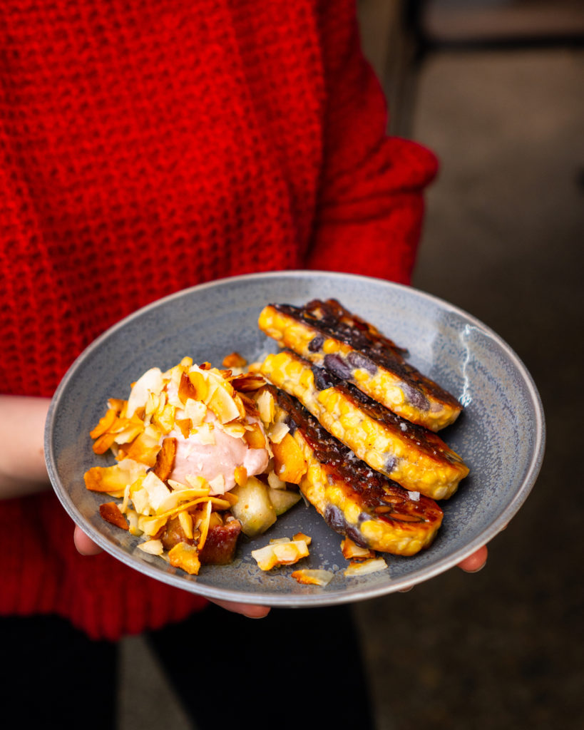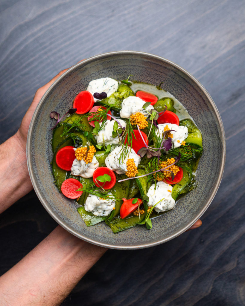 Důležitou součástí nabídky jsou zeleninové a vegetariánské pokrmy. Hlavním zástupcem je tempeh z fazolí a hrachu, v jarní verzi s tvarohovou zmrzlinou s brusinkami, fíky, rozmarýnem a kokosem. Naprostou novinkou jarního menu je pečená karotka s pyré z fermentované mrkve, sýrem v popelu, pistáciemi a estragonem. A kdo bude chtít úplně odlehčit, zvolí okurkový salát s tzatziki labneh, fermentovanými ředkvičkami, hořčičným semínkem a koprem.