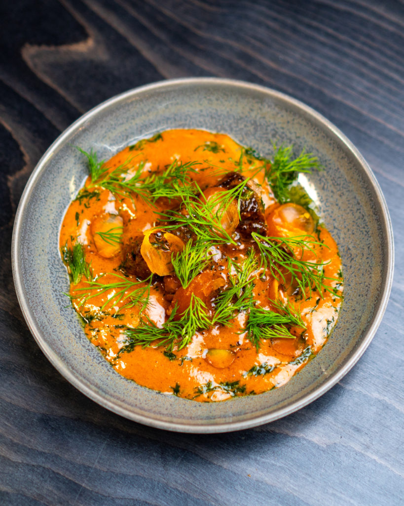 Hosté nebudou ochuzeni ani o novou verzi signature hovězího s variací na některou z klasických omáček. Po úvodní křenové následovaly houbová a smetanová omáčka ? la svíčková. Nyní se o slovo hlásí koprovka, která v podání KRO bude vypadat následovně: pečené hovězí, sladkokyselá omáčka, konfitovaný žloutek, koprové pesto, opečené brambory.