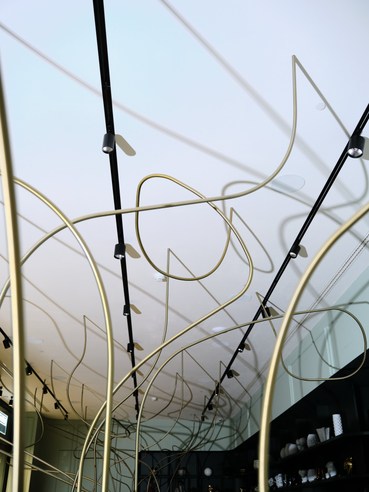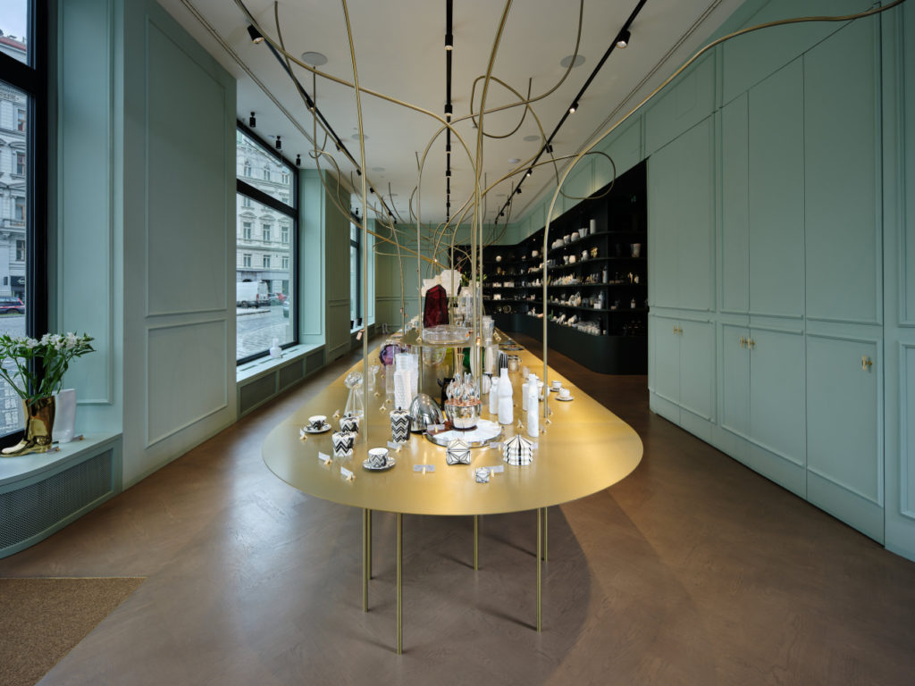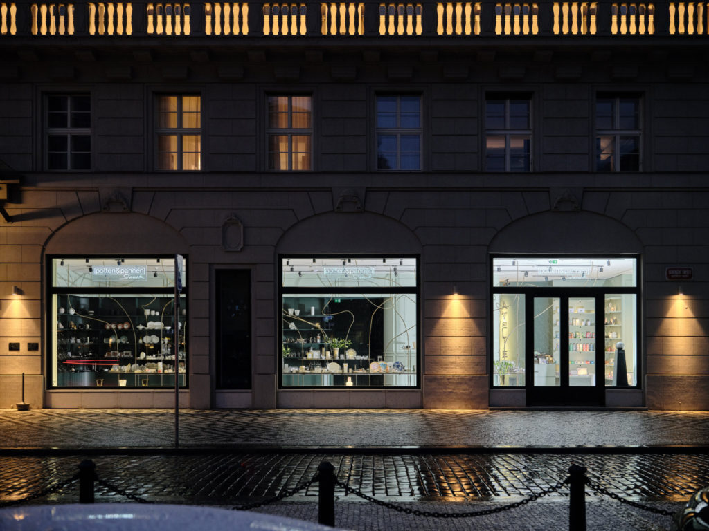 Ryze česká značka spojila síly s věhlasnými lokálními designéry a návrháři. Kromě děl mezinárodně uznávaného umělce Maxima Velčovského, který se zároveň stal kurátorem výběru českého designu, se zde nachází rozsáhlá prezentace skla a uměleckých artefaktů značky Lasvit, dále vázy, jídelní sety nebo lahve galerie Křehký, ručně vyráběné a malované hračky vycházející z tradičního řemesla od Václava Špály, designéra Ladislava Sutnara či malíře Jožky Baruchy. Zaujme i kubistická tvorba Pavla Janáka nebo skleněná díla od světového architekta Jana Kaplického. Opomenuti nemohou být ani aktuální vítězové prestižního ocenění Czech Grand Design 2022 Terezie Lexová a Štěpán Smetana, kteří ztvárnili již zmiňovanou uměleckou skulpturu ve spodním patře prodejny, originálně zpracovaný nápis Atelier a také venkovní výlohy.