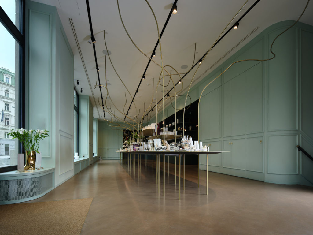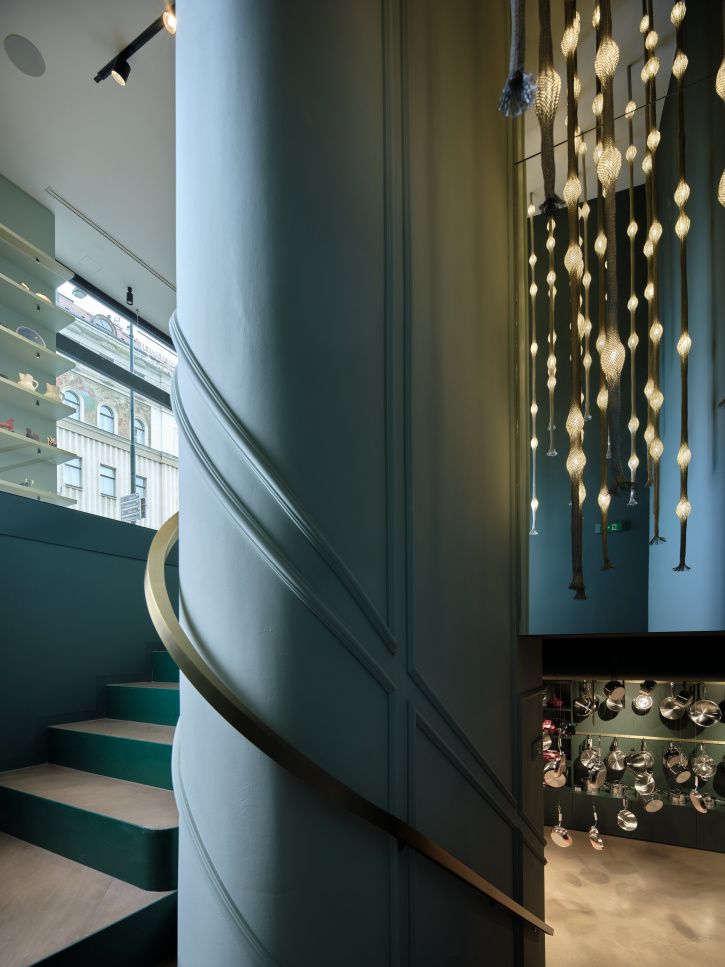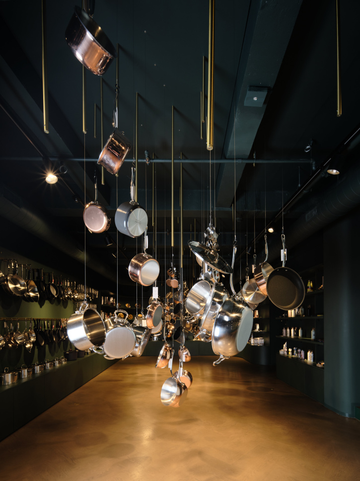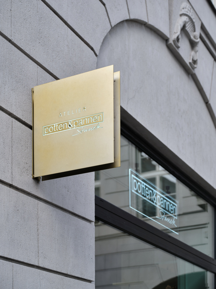 Prodejna s naprosto ojedinělým konceptem na první pohled upoutá svým uměleckým zpracováním: „Dominantou Atelieru Potten & Pannen – Staněk je patnáctimetrový masivní mosazný stůl – symbolizující bohaté hodování z toho nejdokonalejšího nádobí, které si dokážeme představit. Tímto na míru vyrobeným artefaktem prostupují dlouhé měděné tyče, jež mají evokovat linoucí se vůni, která se vždy pojí se skvělým jídlem a která vzniká kde jinde než v kuchyni. Ta se pomyslně nachází o patro níže a jejím výrazným prvkem je umělecká skulptura tvořená nádobím michelinských kuchařů značky Mauviel. To je zavěšeno u stropu ve vlnách a působí tak, jako kdyby celý prostor tančil,“ doplňuje svého dlouholetého obchodního společníka druhý z majitelů Potten & Pannen – Staněk, Miloš Staněk a dodává: